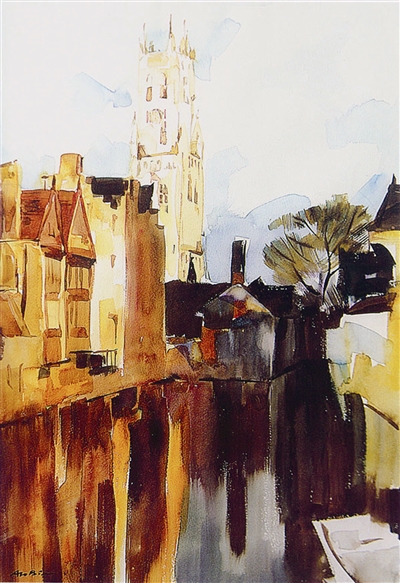他的水彩是具有东方诗性和意蕴的文人风景绘画。色调丰富多变、意气纵横是他作品独有的特征。他的水彩,更像一首彩色的诗,他对色彩的敏感犹如一位感情丰富的诗人,既有东方传统的神思与形色的交融,亦有西方绘画那种强烈的形式语言力量。