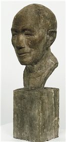我创作的另一件雕像,名叫《冯兴福肖像》,在塑造的时候我用了尽量概括的手法,造型上力求空间上的整体,在细节上稍做刻画,细节的体积稍微压扁,甚至刻线,以保证不破坏整体的效果。在颜色上做了这种古朴的颜色,以此来表现出老河工本身的平凡、朴素。他们辛苦工作也知足常乐。