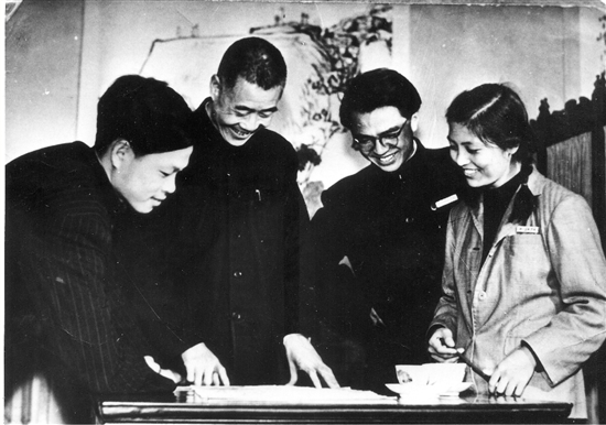 | 20世纪50年代,潘天寿与学生摄于杭州景云村寓所。