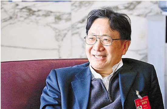 | 全国人大代表、中国书法家协会副主席陈振濂接受记者采访。 丁谨之 摄