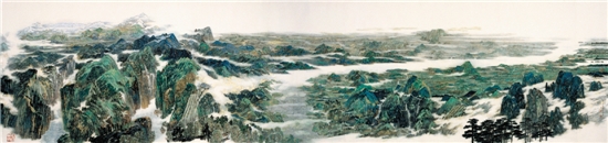 | 童中焘、卓鹤君、陈向迅 江山万里 1150×270cm 水墨设色 1999年