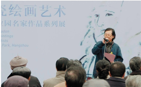 | 中国美术学院中国画与书法艺术学院院长尉晓榕主持展览开幕式