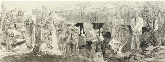 这不,在创作《钢铁洪流——红军挺进师》期间,画家常青一年都找不到创作感觉,每次草图都不满意,就在2015年农历春节前,他来到遂昌黄村口粟裕、刘英战斗过的地方,实地体验感受当年的氛围,终于找到创作灵感。“实际上,讲到底还是要深入生活,还是要对我们民族,对我们历史心存感情。”常青深有感触地说。