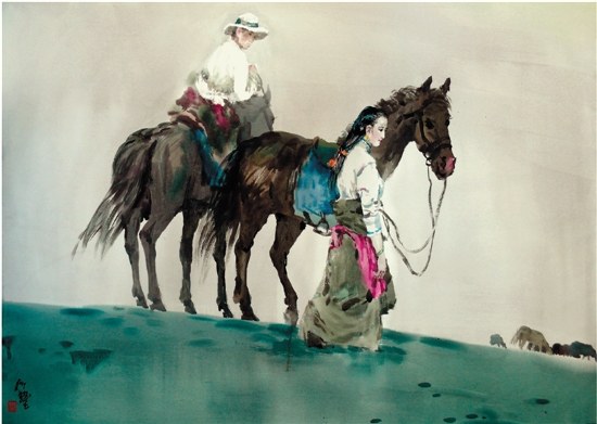 毕业后,我留校任教。那时学校鼓励我们多搞创作,年轻老师都分配了工作室,我与唐勇力的工作室紧挨着。也常去串门,一张高低铺的床,上铺堆满了各种画册,其中有一套《中国美术全集》十分抢眼。他真用功,几乎所有的时间都在工作室中。回想起来,他有今天的成绩和影响,理所当然。