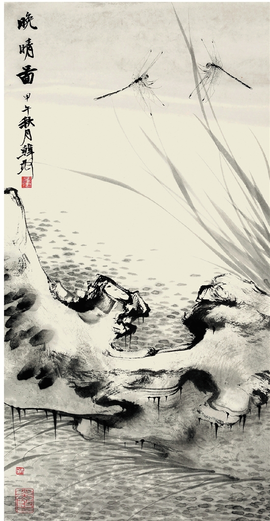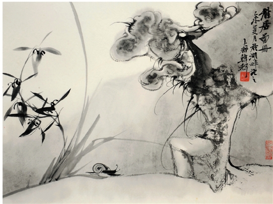 如今,韩璐的水墨花鸟画已成响遏、怒放之势,呈现炽热、飞扬的韵律美,绵连不断,浓淡相宜。我诧异于他画笔下水行墨渍后所呈现出的润透清旷,简洁明亮,干干净净,笔笔均有清晰交待,委婉而不失劲拔,正是对自然界勃勃生机的着力表现和由衷赞美,正是他崇尚高洁情怀的心性流露。我想到老院长潘天寿先生,曾告诫青年学子不要把画画脏了,像人的脸没洗干净一样。面对这张白纸,不要太多笔墨,却能传达出尽可能多的信息,以其经典的表现语言,做到不露声色,直奔主题。兵不血刃而能屈人之兵,这叫高级。从精到静、到笨,到从容自在,无我忘我。只有本真的心性驱从笔墨,在纸上一笔笔划过,无染而悠然。一如韩璐所言:“这是一种生命的圆满,是对人性至诚审美理想的由衷赞美。”“中国水墨画的形成与中国传统文人的审美崇尚密不可分……其内在的能量是对朴素、简约、淡泊、空寂的心性笃守,从而在有限中不断释放出无限艺术魅力,使中国传统的人文精神在时代的更替与文化的庚续脉络中获得永恒。”(引自《水墨探赜》第32-35页)