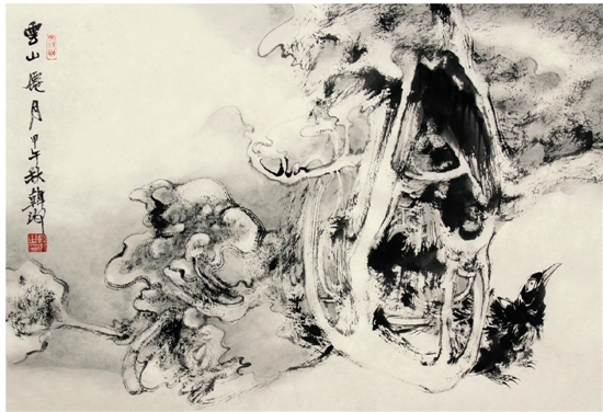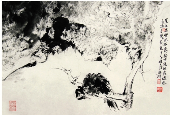 韩璐打这个比方,以此反思说,我们是否也常常扮演乌鸦的角色?习惯于寻找固化的、已知的、人云亦云的结论。其结果是图解概念,舍近求远,本未倒置,把原点问题扔掉了,做了许多无用功。韩璐说,就绘画而言,笔墨只是石头。我们要寻找的不是石头,是作品所应呈现的审美意趣。如果一味地寻找石头,会忽略美感,忽略绘画意图。他说,笔墨表现力千变万化,无可穷尽,很难判断哪种好、哪种差。一旦陷到寻找石头的误区里,丢弃原点,绘画会失去方向,陷入迷茫。