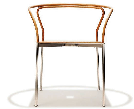 “这张钱椅的原型就取自明式的圈椅,普通但不简单。仅用寻常木椅十分之一的耗材,木头做得非常非常细,跟手指一样。钢筋串在木头里,稳固坚定,寥寥几笔,把明式圈椅的精神勾勒出来……”