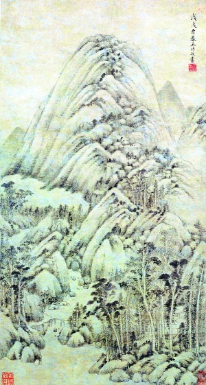 | 黄公望《九峰雪霁图》轴,117×55.5cm,纸本墨笔,故宫博物院藏