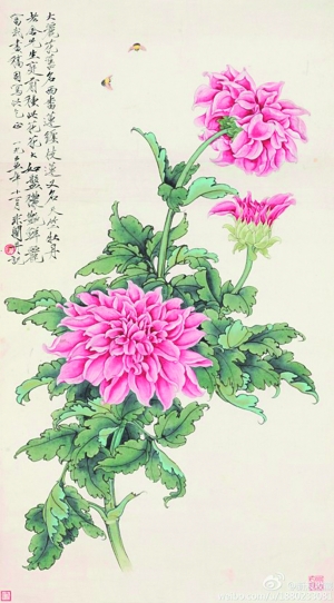 | 林风眠的《大丽花》(右)与工笔的花鸟(左)相比,也是单笔高效和单笔低效的比较。