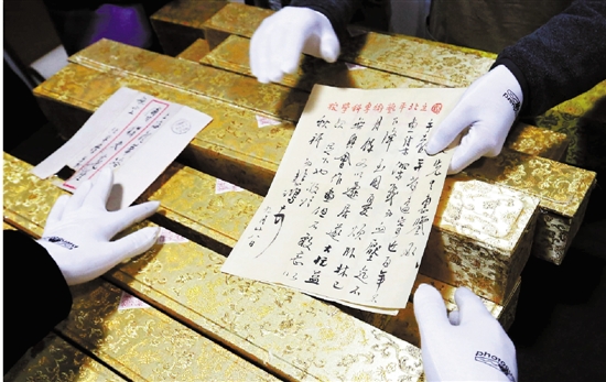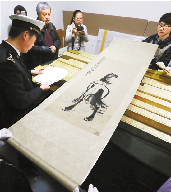 轻轻地,戴着白手套的海关人员,与浙江美术馆馆长斯舜威一起开启运抵杭州的书画箱。