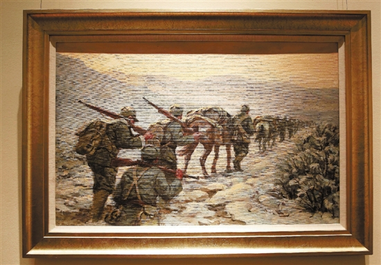 | 黎冰鸿油画《黄昏出击》。 本报记者 魏志阳 摄