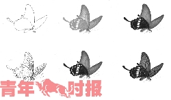 记者发现,《花鸟鳞介编》贯彻“大家小书”一贯简约、时尚的风格,由6张长方形的小卡片组成了一份易携带的小册页。《花鸟鳞介编》由“作品简介”“选作特点”“选材介绍”“分解步骤”和“技法要点”五个部分组成。以《晴春蝶戏图》中的一只凤蝶为例:每份册页有两种不同的草虫画法的介绍。首先,册页上介绍了该画的名称、作者、尺寸、现藏地等基本信息;其次,在对纸、笔、颜料等的选择上一一做了说明。画凤蝶的步骤分析,均由研究生一步步描绘,加以文字的注释,并在最后附上名师点拨。这样不仅有助于初学者更清楚地了解该画的绘制步骤,也可以避免初学者形成一些错误绘画习惯,让国画初级教学更传统、更专业。