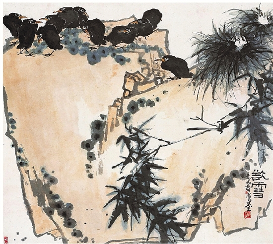 在20世纪中国画大家中,潘天寿对画面构图的苦心孤诣是最为突出的。他的变体画创作可分为:对古人风格和境界的追摹,变体临拟,血战古人;对某种主题一画再画,以寄托情思;对符合自己艺术个性的题材反复表现;为画面改良或推敲的目的而重画;用不同的构图来表现或强调不同的意境等。