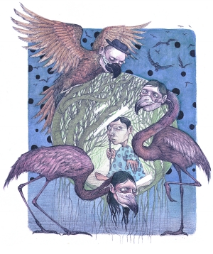芊祎的风格,很容易让人以为她大学所学专业偏向欧美风格,其实她大学四年学的是传统民族版画。她说,在创作风格上,自己并没有刻意地去寻求什么,直到现在,她也不觉得自己有固定的插画风格:“插图主要是为了配合文字存在,许多时候要考虑作者的想法、读者的想法,有些书,编辑、作者都有很明确的要求,这样一来,画面上很多我本想表达的东西就会减弱了。”尽管如此,芊祎每天也还是会浏览很多大师的作品网站,现实、抽象,都有:“我喜欢各种风格的艺术,有时候会看像克里姆特或是比亚兹莱这样装饰风格浓重的。”她也喜欢宗教绘画、教堂壁画或是《圣经》里的图画,都很符合她自己的创作趣味:“我喜欢画的画,都要有力量感并且有仪式感。”