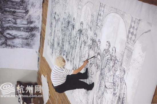 2009年,吴山明老师创作国家重大题材作品《遵义之春》(资料图)