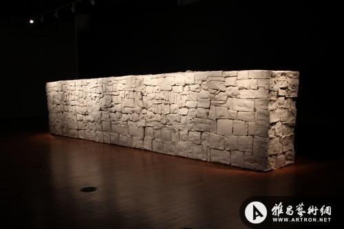 雅昌艺术网:在题材上,有很多作品和石头有关,以前的《假山》,这次展出的《老墙》等等,请谈一下《老墙》这件作品的创作情况?石头和您的艺术中所使用的纸浆、棉、麻等材料存在着哪些共通性?