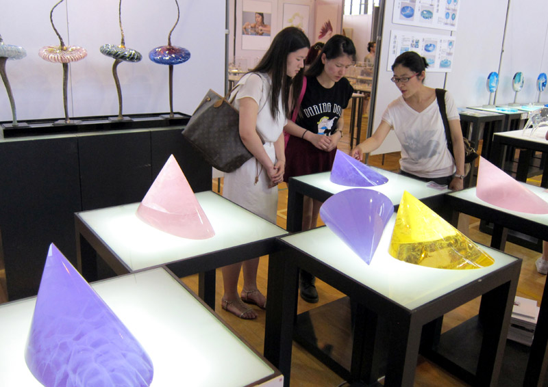 5月27日,中国美术学院师生正在欣赏陶瓷与工艺美术系学生刘靖恺的毕业创作作品玻璃铸造《气质》。新华社记者王小川摄