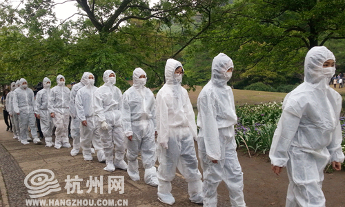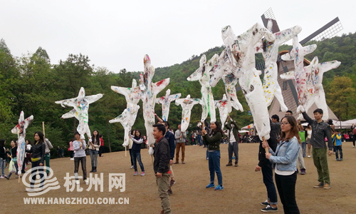 杭州网讯 太子湾大风车草坪上近日举行了一场别开生面的行为艺术表演,来自中国美院的学生志愿者自发组织了这场以“对不文明行为say No,我是中国好游客”为主题的活动,呼吁游客文明游览,爱护环境。