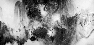 此时的朱德群完全打通了中西、抽象与具象的界限。1965年所画的《泉》中可以看到范宽的影子。在《遇》中,山峰间的一条路径或一片林中空地,好像邀请观者遨游其中,又让人看到李可染的风格。