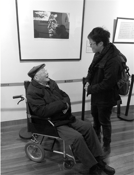 昨天下午,最早一批登上“文脉”系列、已经91岁高龄的版画家赵延年也来到展览现场。