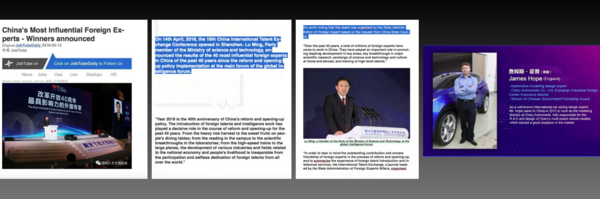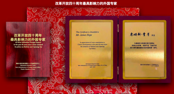 ⼈社部授予“改⾰开放40周年最具影响⼒的外国专家“荣誉(40⼈之⼀)