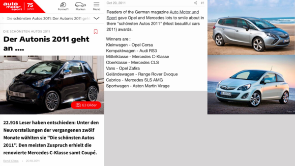 Auto Motor and Sport "Most beautiful car awards " 2011