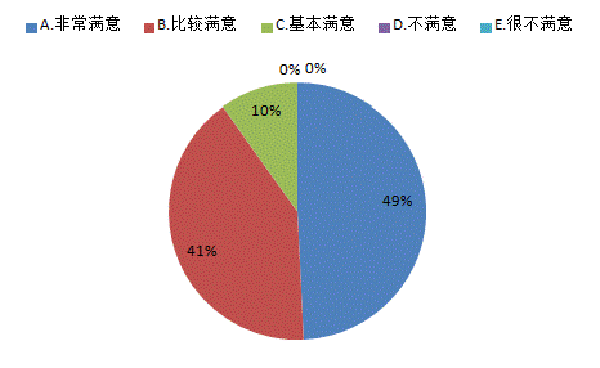 调查表明,用人单位对我校毕业生的专业能力满意度达到100%,49%用人单位表示非常满意,41%表示比较满意,10%感到基本满意。