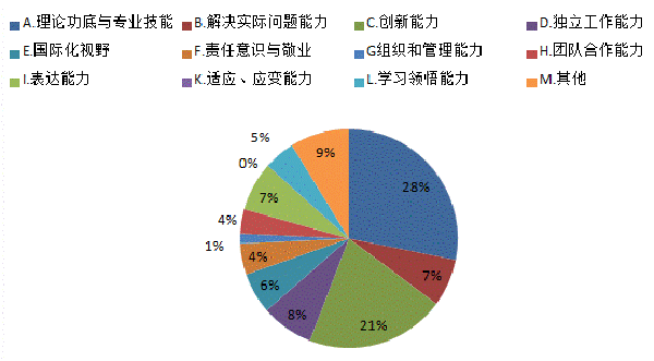 调查显示,28%的用人单位认为我校毕业生求职优势在于理论功底和专业技能;21%的用人单位觉得我校毕业生的创新能力较强。分别有7%和8%的用人单位对毕业生的表达能力和独立工作能力持认可态度。